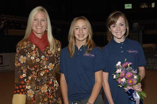 The highlight of their victory was being part of the photo awards presentation after Hunt Tosh won the $7,500 Professional World Championship Hunter Rider Finals for the 2009 AHJF Professional WCHR title. At the end of the evening they attended the Pro Finals press conference and had their picture taken with Hunt and the five other finalists.
