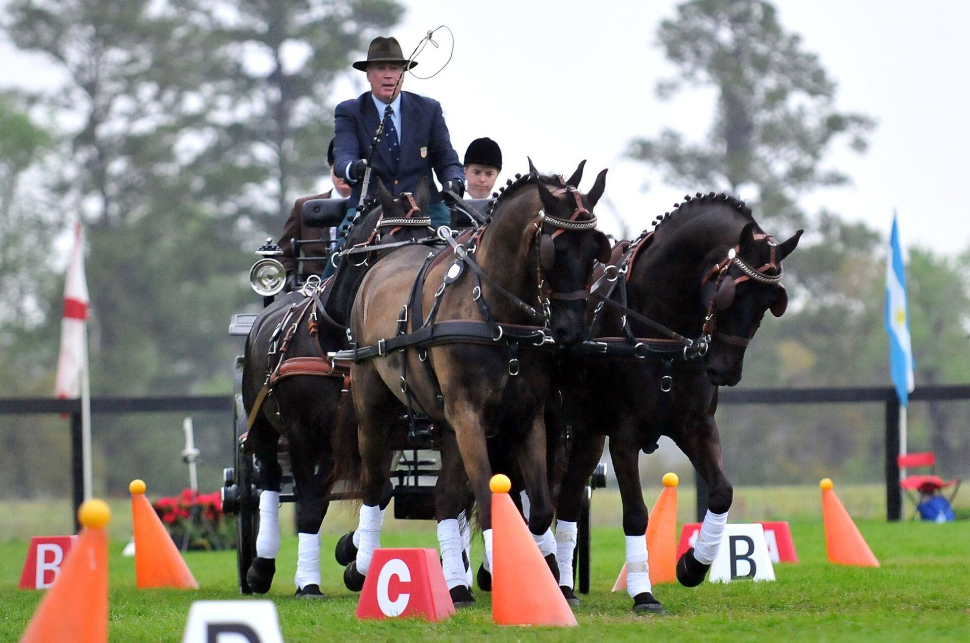 The combined driving four-in-hand team of Nordby Coalie’s Duke, Nordby Coalie’s Coal Dust, and the full brothers Nordby Shadow’s Sam Spade and Nordby Shadow’s Rocky have put in solid performances at three driving events in Florida this year, which were all selection trials for WEG. The team is expertly driven by David Saunders. At the first competition of the year, Little Everglades International, Saunders finished in fourth place and was the third-place American. At the Sunshine State Combined Driving Event in February, he was third overall, and at the Live Oak International in March, he was fifth overall, out of 14 competitors. Currently, the team is sixth in the four-in-hand rankings, dated March 30. The World Equestrian Games will take place in Lexington, Kentucky, September 25-October 10 and is the first time they will be held in the United States.