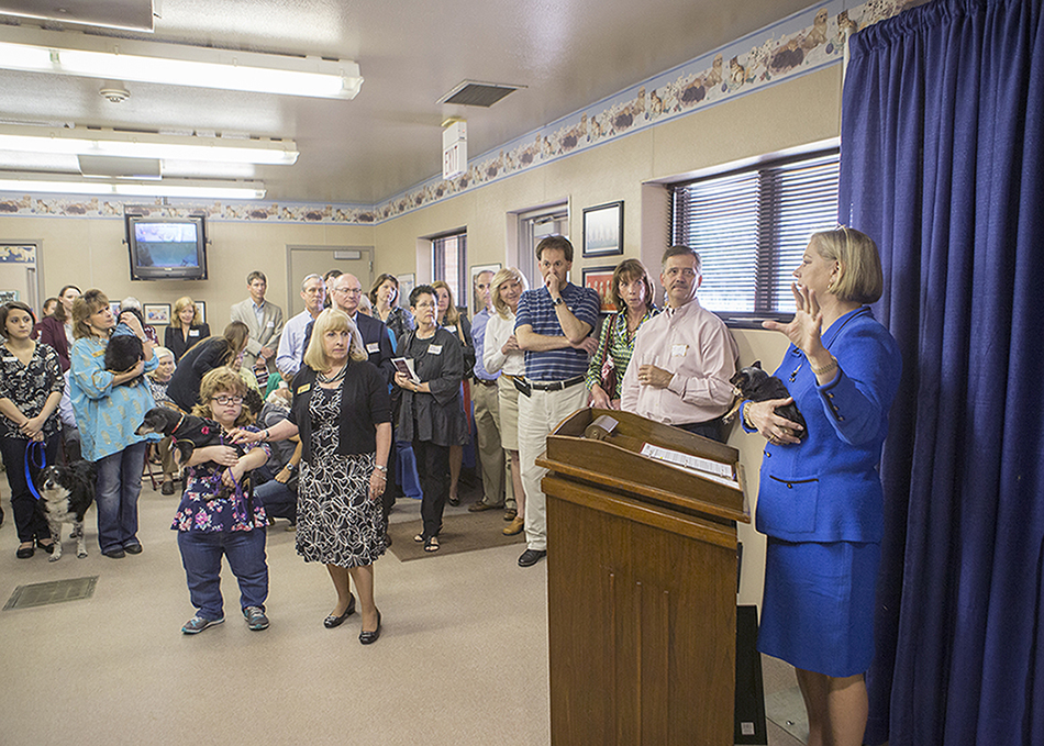 “It is very exciting to celebrate 20 years of caring for companion animals when their owners are no longer able to provide for them,” said Dr. Eleanor Green, Carl B. King Dean of Veterinary Medicine. “Today, not only do we reflect on the two decades of compassionate care provided within these walls, we officially open the newly completed expansion to the facility that will enhance the comfort and care provided for residents now and in the future.”